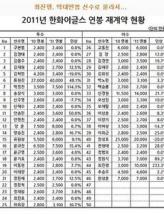 2011년 한화이글스 연봉 재계약 현황