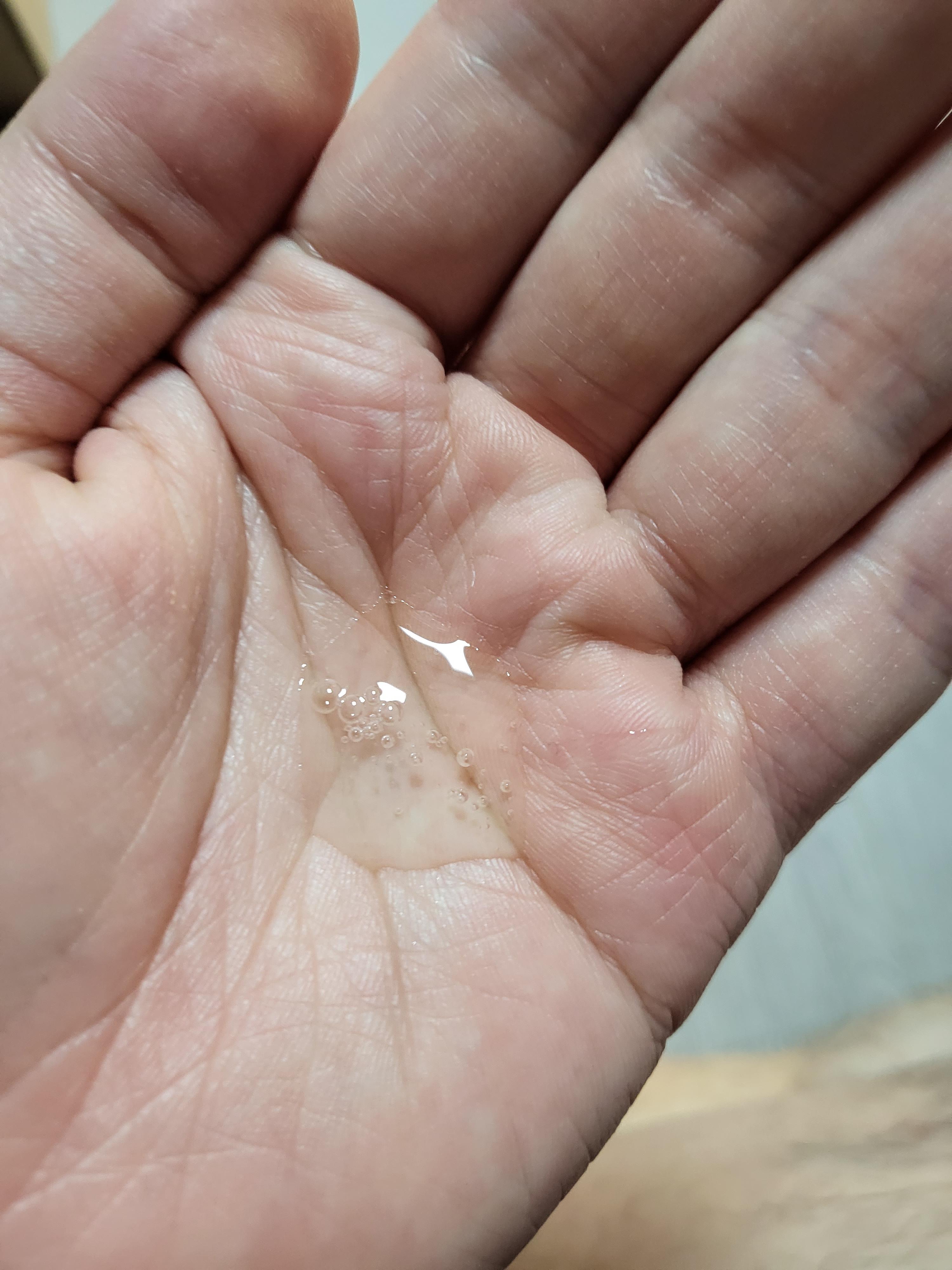 추가적으로 그린핑거 포레스트 워시의 제형 입니다. 투명한 제형이 깨끗하게 씻어줄것같은 느낌을 줍니다.