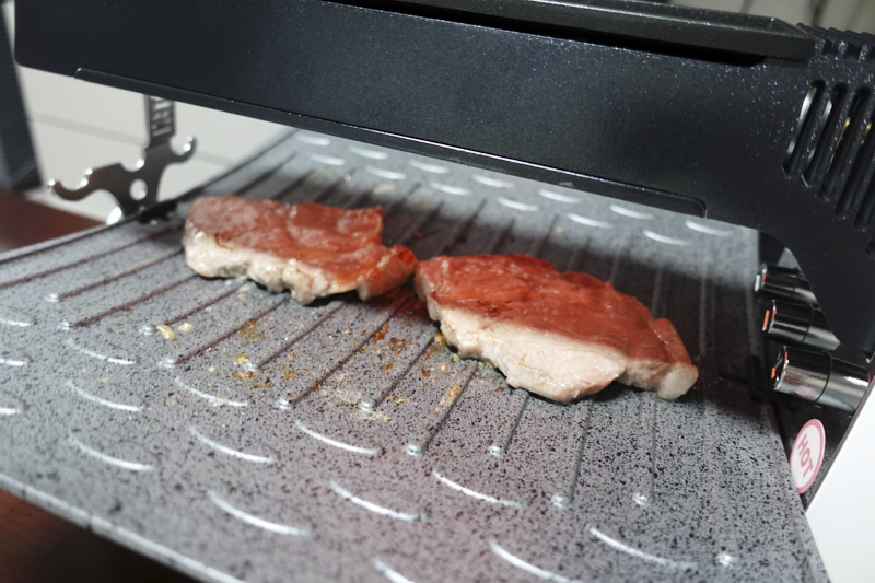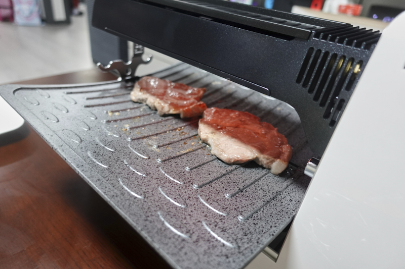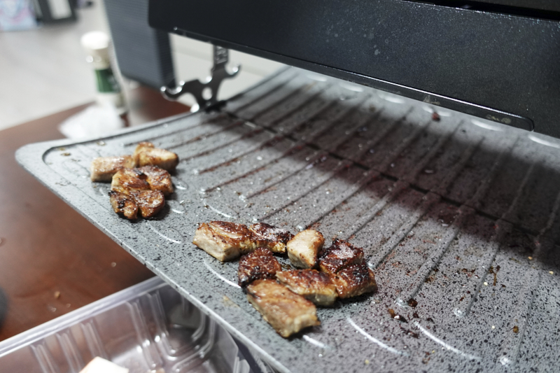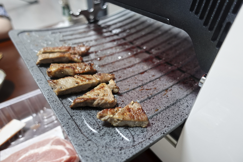 위에서 열이 가해지다보니 고기가 익는 모습을 육안으로 바로 확인할수 있는데요, 나름 화력이 강하다보니 방심하면 고기가 타기도 합니다. 다만 타는 모습이 바로 보여서 많이 태우는 일은 방지할수 있습니다.