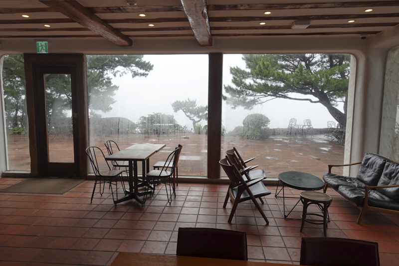 제가 방문했을때는 비가 조금 내리고 있어서 테라스를 운영하지는 않았는데, 테라스에도 테이블과 파라솔이 있어서 바다를 보며 휴식을 취하는것도 가능합니다. 바로 앞이 절벽이라서 날씨가 좋을떄는 멀리까지 바다를 볼수도 있습니다.