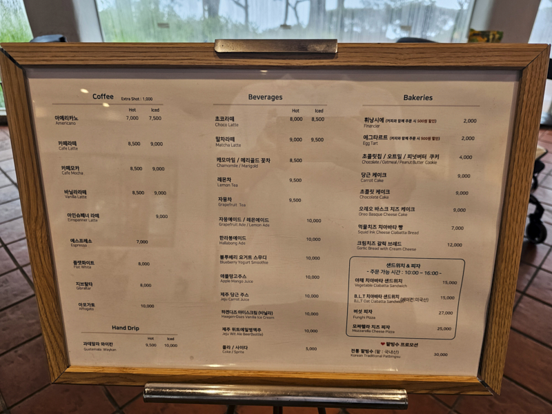 기본적인 베이커리류 이외에 샌드위치와 피자 종류는 오전 10시부터 오후4시까지만 주문이 가능합니다. 모짜렐라 치즈 피자는 가격에 비해 양이 적긴 하지만 진짜 맛있습니다. 혹시 방문하시게 된다면 꼭 드셔보시기를 추천 드립니다.